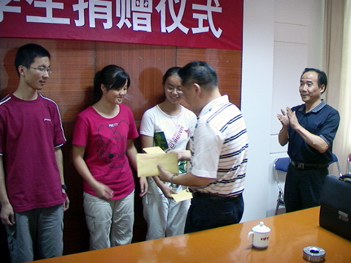 8月14日,福建大境堂南武夷旅游投资发展公司董事长周礼德先生,在陈心坦副书记、熊元龙局长的陪同下顶着骄阳酷暑来到邵一中,与我校应届贫困大学生亲切地交谈,并资助了陈钰、邓小妹等七位同学每人5000元作为大学第一学期的学费,还表示将对家庭特别困难的吴辉(清华大学)、陈钰(上海理工大学)、丁香清(天津科技大学)三位同学进行全程跟踪,资助他们完成大学学业。