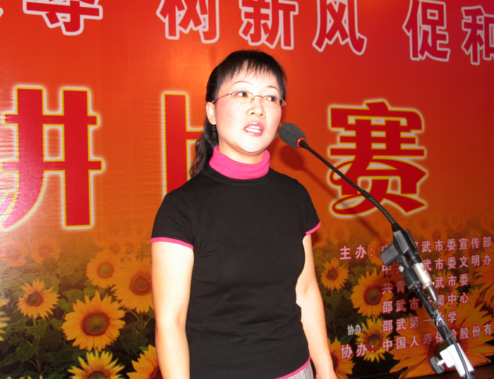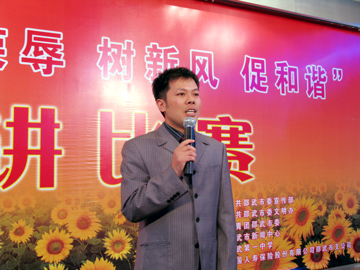 11月5日晚,由邵武市宣传部、文明办、团市委、邵武新闻中心、邵武一中主办,人寿保险、新华书店协办的 “知荣辱、树新风、促和谐”演讲比赛决赛,在邵武一中教工会议厅举行。本次演讲比赛是邵武市第六届“读书月”主题活动的重要举措,从预赛中脱颖而出的10名选手参加了决赛,市常委组织部长林贤和,市文明办主任杨华,宣传部副部长马星辉,团市委书记江克,副书记范晓蓉观看了比赛。选手们用内容真实、生动感人的事迹,阐发了自己对于“知荣辱、树新风、促和谐”这一主题的深刻认识,他们慷慨激昂的语言,流畅简洁的表达,得体自然的台风,赢得了观众阵阵掌声,精彩的演说给大家送上一堂特别的知荣明耻教育课。通过激烈角逐,比赛决出一、二、三等奖,由邵武一中团委选送的危炜同学荣获本次大赛一等奖。