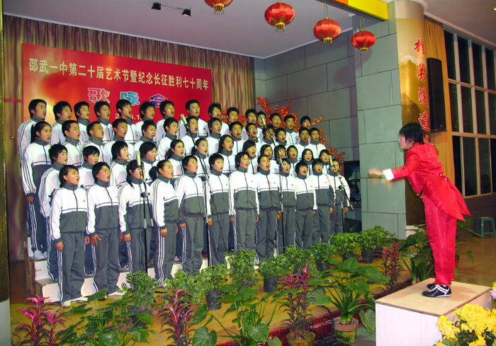 12月28日起,邵武一中组织全校师生按年段分三天在校学生报告厅举办纪念长征胜利七十周年歌咏会,全校师生共3000多人参加了此次纪念活动。本次歌咏比赛中同学们合唱的歌曲除包括充满阳刚与活力的《精忠报国》外,还包括《黄河大合唱》、《我们走在大路上》、《歌唱祖国》、《红星歌》等以缅怀长征、歌颂祖国为主旋律的优秀革命歌曲。同学们洪亮的歌声,奏响了我校师生爱国主义的最强音,燃烧了激情,传承了长征精神,再现了长征瑰丽的篇章。整场歌咏比赛始终洋溢着喜庆、祥和、热情、奔放的气氛,台上演员引吭高歌,台下观众掌声雷动,喝彩不断,这次比赛按年段评出两个一等奖,四个二等奖和八个三等奖。通过这次歌咏比赛,进一步颂扬了红军长征精神,让同学们真正地体验理解长征的精神实质和时代内涵。