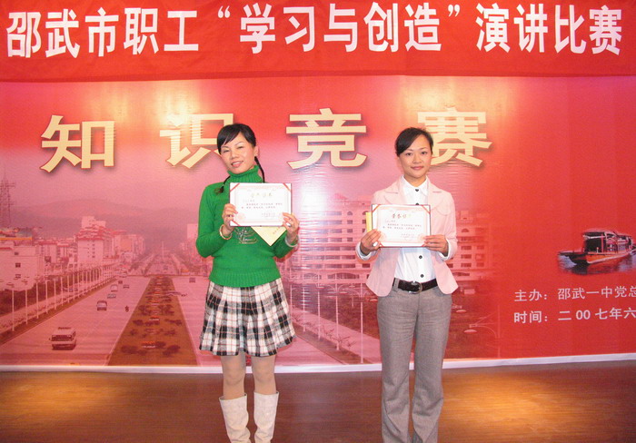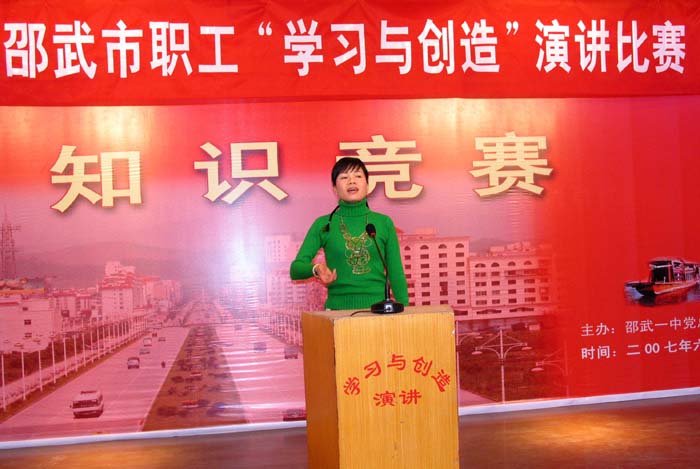 校园新闻 我校黄勇英老师在邵武市职工“学习与创造”演讲比赛中荣获一等奖 作者:admin 来源:本站原创 日期:2007-11-13 人气:4042 我校黄勇英老师在邵武市职工“学习与创造”演讲比赛中荣获一等奖 上一篇:11月23日在我校组织高三年段拨河比赛中高三(3)班勇夺冠军 下一篇:南平市教育局仪器装备站来我校检查指导争创省中学示范图书馆工作 通知公告 更多 【瑞榴 • 公告】2026年邵武一中第... 【瑞榴 • 公告】2026年邵武一中自... 【瑞榴 • 公告】2026年福建省邵武... 【瑞榴 • 公告】2026年福建省邵武... 【瑞榴 • 公告】2025年邵武一中第... 【瑞榴 • 公告】2025年福建省邵武... 最新动态 更多 【瑞榴 • 德育】春启新程育桃李 ... 【瑞榴 • 德育】百日淬烽尽,六月... 【瑞榴 • 校园开放日】百年传薪启... 【瑞榴 • 德育】凝心聚力启新程 ... 【瑞榴 • 家校活动】瑞榴沁家校 ... 【瑞榴 • 教研】喜报!邵武一中课... 【瑞榴 • 学生活动】薪火相传,筑... 【瑞榴 • 安全】严排查、除隐患、... 【瑞榴 • 初中活动】瑞榴润教 安... 【瑞榴 • 德育】瑞榴润心 育真同...
