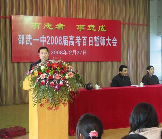 2月27日下午,邵武一中高三全体师生在邵武一中学生报告厅举行了迎高考百日誓师大会,