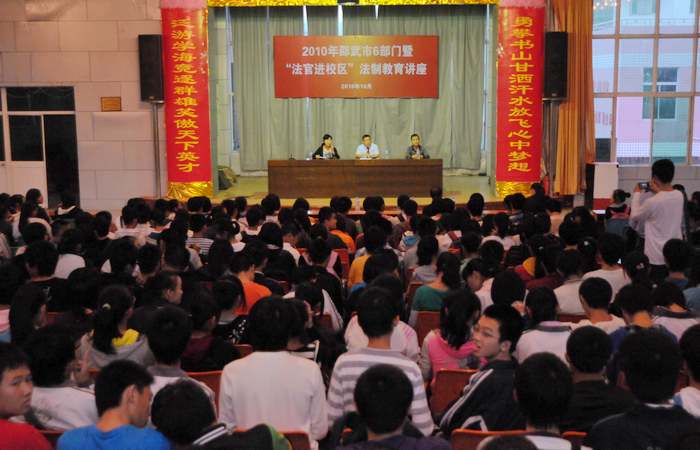 校园新闻 邵武一中:法制教育讲座进校园 作者:admin 来源:本站原创 日期:2010-10-14 人气:3483 邵武一中:法制教育讲座进校园 10月14日下午,邵武市法院政治处祝邵福主任、林业庭林星荣庭长来到邵武一中为全体高一学生举办了一场法制教育讲座。讲座上,林星荣庭长作为少年庭的老法官给同学们通报了近期在校生犯罪情况,祝邵福主任结合中学生的特点,用具体翔实的案例、生动形象的语言,告诉他们在日常的学习和生活中应该做什么,不应该做什么,怎样才能使自己成为一名遵纪守法的合格中学生,精彩的讲座赢得了老师和同学们的阵阵掌声。此次讲座在提高中学生的法律意识、优化校园环境等方面起到了积极的推动作用。 上一篇:2010年10月18日开放周熊近爱开课 下一篇:我校开展“师德师风主题班会” 通知公告 更多 【瑞榴 • 公告】2026年邵武一中第... 【瑞榴 • 公告】2026年邵武一中自... 【瑞榴 • 公告】2026年福建省邵武... 【瑞榴 • 公告】2026年福建省邵武... 【瑞榴 • 公告】2025年邵武一中第... 【瑞榴 • 公告】2025年福建省邵武... 最新动态 更多 【瑞榴 • 教研】深化课堂教学改革... 【瑞榴 • 安全】家校协同筑牢“舌... 【瑞榴 • 德育】春启新程育桃李 ... 【瑞榴 • 德育】百日淬烽尽,六月... 【瑞榴 • 校园开放日】百年传薪启... 【瑞榴 • 德育】凝心聚力启新程 ... 【瑞榴 • 家校活动】瑞榴沁家校 ... 【瑞榴 • 教研】喜报!邵武一中课... 【瑞榴 • 学生活动】薪火相传,筑... 【瑞榴 • 安全】严排查、除隐患、...