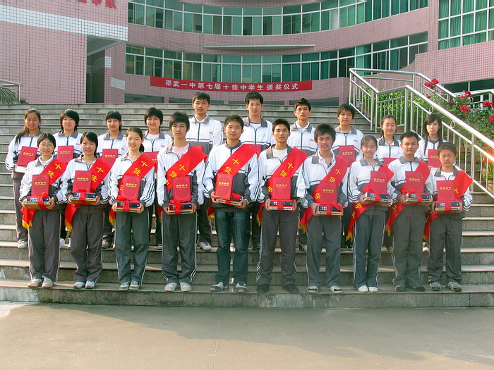 经过近一个月的准备、宣传、投票,邵武一中第七届十佳中学生评选工作已落下帷幕,5月12日上午,在学校升国旗仪式上,校领导为获得校“十佳中学生”称号的江东灿、危创彬、邓婕、许丹宁、胡梦杰、林悦、肖宜、官自超、张仁徽、熊权这十位同学,颁发了获奖证书和奖品。