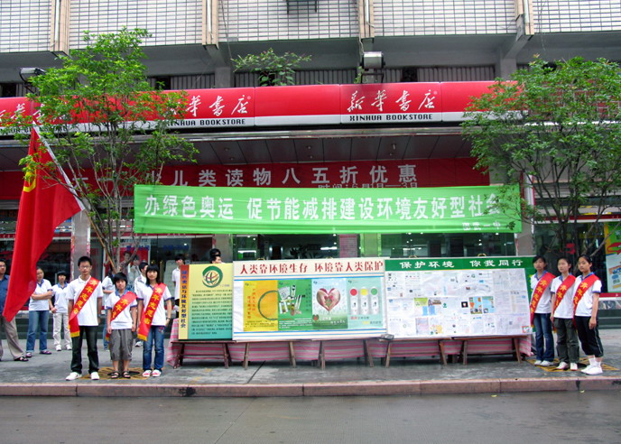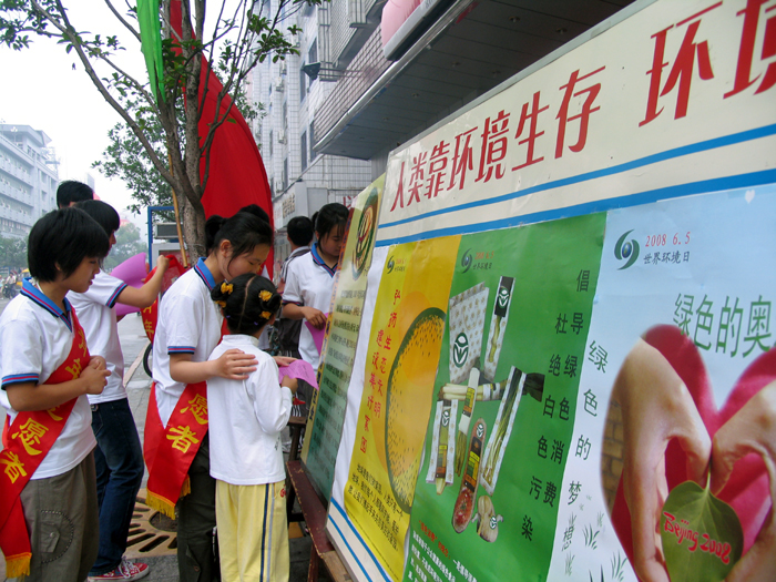 在组织好这次上街环保义务宣传活动外,学校团委还将会同校地理教研组紧紧围绕“六五”世界环境日的主题,充分利用校园网、校园广播、黑板报、宣传栏、环保小报等形式,号召全校师生学习有关环保知识,环保法律法规,并组织开展好以下系列活动:一是利用周一国旗下讲话时间要求全体师生从身边做起、从小事做起,自觉保持环境整洁,参加到绿化、美化校园的活动中去。二是全校学生以“保护环境,爱我家园”为主题,进行一次环保论文比赛,对优秀论文在全校进行展评;三是在团员志愿者中组织“环保小分队”,到社区宣传环境保护的重要性,号召社区居民积极行动起来,参与到环境保护、创建绿色社区,建设人与自然和谐相处的绿色家园活动中去。