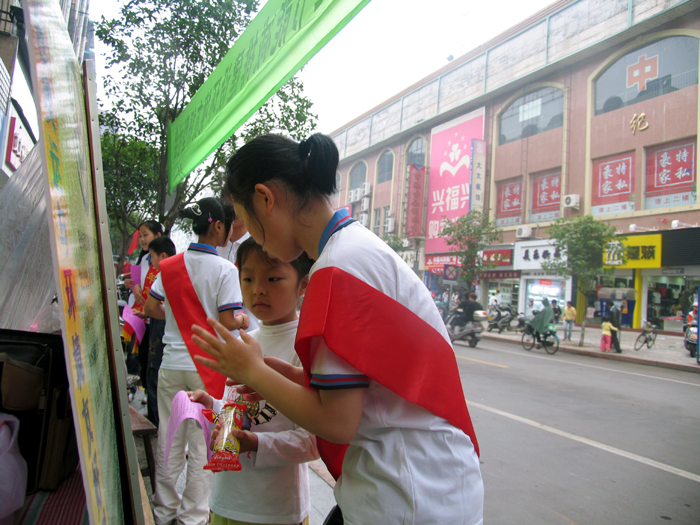 校团委与地理组上街开展“六五”世界环境日宣传活动