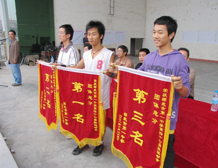 经过二天半的激烈角逐,邵武一中第47届田径运动会于10月25日上午胜利落下帷幕。本届校运会的主题是“弘扬奥运精神,共建和谐一中”,突出“团结、友谊、和谐、参与”的特点,全体师生团结友爱、文明参赛,赛场上奋力拼搏,在进行的10个大项目比赛中,共决出冠军79人次,其中来自高三7班的朱蓉蓉同学打破女子800米校运会记录,高三13班的谢腾飞同学打破三级跳校运会记录。