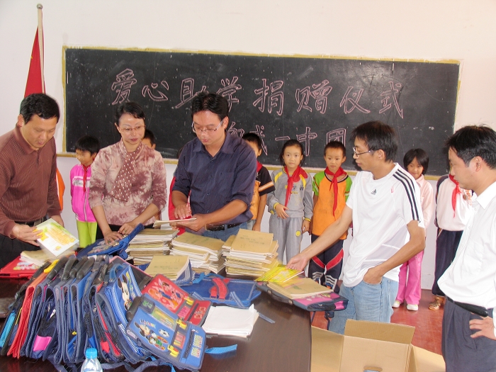 10月23日上午,邵武一中团委一行六人冒着秋雨,在金坑乡党委宣传委员的陪同下,首先代表学校为金坑乡的文化中心户送上联想电脑一台,随后他们来到金坑中心小学为20多位贫困学生赠送了书包、簿籍等学习用品。在捐赠仪式上,一中团委的老师们勉励孩子们要好好学习,长大做一个有作为的人。爱心助学活动为农村贫困学生带来阳光般的温暖,孩子们感谢一中团委对他们的关爱,并表示一定要好好学习,长大后回报社会。