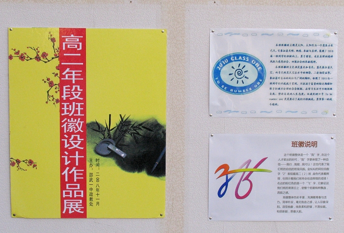 “这个班徽整个是一个“我”字,在这个人才辈出的时代“我”字又体现了一种自信—我行,我能,我可以!这也代表了我们班自信的班风班貌!”高二(2)班的班长黄睿正卖力地向围观同学介绍自己班的班徽。他们班要争取在全校班徽设计大赛中拨得头筹。
