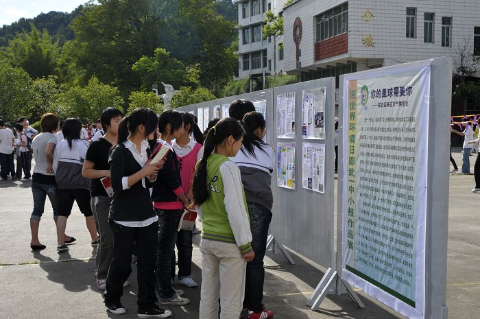 “两个胖子打一中国城市——我知道,我知道是合肥”!“文太师打翻醋罐子——谜底是酸雨!”邵武一中同学们兴奋地聚集在一中六五世界环境日猜谜游园活动现场,快乐地猜谜、观看地理小报的展板。不知不觉中,同学们学习到了许多的环保和地理知识。