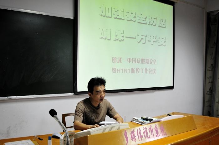 国庆长假即将来临,为切实做好节日期间的安全工作和甲型H1N1流感防控工作,9月28日下午,邵武一中在校多媒体教室召开全校班主任工作会议,对国庆长假的安全工作进行了周密的部署和安排。