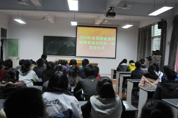 校园新闻 一中团委举行2010年度黄仲咸教育基金会助学金发放仪式 作者:admin 来源:本站原创 日期:2010-12-07 人气:2859 2010年12月7日下午,一中团委在校多媒体教室举行2010年度黄仲咸教育基金会助学金发放仪式。本次发放仪式上,我校共有77位家庭困难、品学兼优的在校高中生获得了黄仲咸基金会助学金。市老区办一行三人为学生发放了总金额达38500元人民币的黄仲咸教育基金会助学金。 上一篇:邵武一中郭胜光老师在省教育厅重点科研课题成果展示会作专家报告 下一篇:邵武一中举办课堂教学有效性专题讲座 通知公告 更多 【瑞榴 • 公告】2026年邵武一中第... 【瑞榴 • 公告】2026年邵武一中自... 【瑞榴 • 公告】2026年福建省邵武... 【瑞榴 • 公告】2026年福建省邵武... 【瑞榴 • 公告】2025年邵武一中第... 【瑞榴 • 公告】2025年福建省邵武... 最新动态 更多 【瑞榴 • 教研】深化课堂教学改革... 【瑞榴 • 安全】家校协同筑牢“舌... 【瑞榴 • 德育】春启新程育桃李 ... 【瑞榴 • 德育】百日淬烽尽,六月... 【瑞榴 • 校园开放日】百年传薪启... 【瑞榴 • 德育】凝心聚力启新程 ... 【瑞榴 • 家校活动】瑞榴沁家校 ... 【瑞榴 • 教研】喜报!邵武一中课... 【瑞榴 • 学生活动】薪火相传,筑... 【瑞榴 • 安全】严排查、除隐患、...
