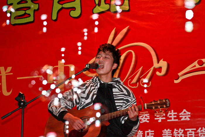 尽管当晚天气有些寒冷,却丝毫不影响同学们高涨的热情。演出在动感十足的乐队演唱“够爱”中拉开了帷幕,青春的气息和张扬的活力一下子就点燃了全场的气氛,喝彩声不断。现代双人舞《Chocolate Love》在徐徐的音乐声中闪亮登场,演员踩着优雅的舞步,和着柔美的曲调,仿佛将我们带进了如诗如画的境地。小品《大话英语》,用诙谐的表演,将英语学习中的困惑与无奈淋漓尽致的表达了出来。琵琶独奏可谓“一曲琵琶歌,道尽渭水情;嘈嘈切切错杂弹,大珠小珠落玉盘”。高一12班肖梓毅同学的单口相声《幸福童年》更把学生生活中的笑料串编起来,让现场变成了欢乐的海洋。最后,晚会在学生会各部部长的合唱歌曲《爱的翅膀》中落下帷幕。