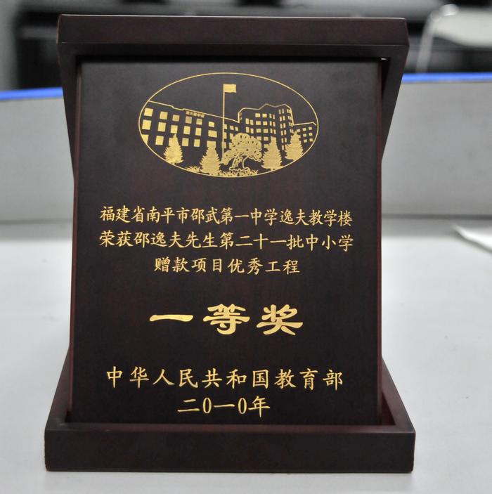 日前,邵武一中逸夫教学楼工程项目经过省级专家评选推荐,荣获国家教育部颁发的“邵逸夫先生第二十一批中小学赠款项目”优秀工程一等奖。