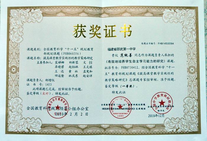 校园新闻 我校全国教育科学“十一五”规划教育部规划课题--“提高课堂教学实效性的教学策略研究顺利结题,两位教师荣获一等奖 作者:admin 来源:本站原创 日期:2011-03-10 人气:2660 上一篇:聚焦课堂 立足教研 教学相长--邵武一中召开“十一五 下一篇:高一11班我们的通用技术课动手又动脑---扑克牌建筑模型制作技术 通知公告 更多 【瑞榴 • 公告】2026年邵武一中第... 【瑞榴 • 公告】2026年邵武一中自... 【瑞榴 • 公告】2026年福建省邵武... 【瑞榴 • 公告】2026年福建省邵武... 【瑞榴 • 公告】2025年邵武一中第... 【瑞榴 • 公告】2025年福建省邵武... 最新动态 更多 【瑞榴 • 教研】深化课堂教学改革... 【瑞榴 • 安全】家校协同筑牢“舌... 【瑞榴 • 德育】春启新程育桃李 ... 【瑞榴 • 德育】百日淬烽尽,六月... 【瑞榴 • 校园开放日】百年传薪启... 【瑞榴 • 德育】凝心聚力启新程 ... 【瑞榴 • 家校活动】瑞榴沁家校 ... 【瑞榴 • 教研】喜报!邵武一中课... 【瑞榴 • 学生活动】薪火相传,筑... 【瑞榴 • 安全】严排查、除隐患、...