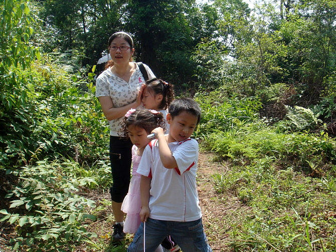 登山比赛喽!哈哈,粲粲暂时领先!