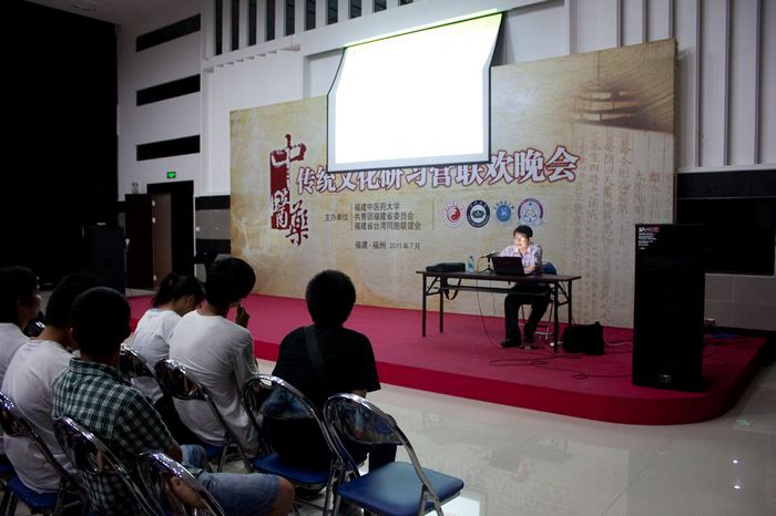 午后,我们十四人同在校的五十大学生以及台湾的五十位同学一起去听郑美凤教授的针灸课。她是一位有着丰富知识以及深沉智慧的老教授。其风趣的语言总是能够抓住我们全部的注意力。在她的课堂上常常爆发出满堂喝彩以及欢乐的笑声。