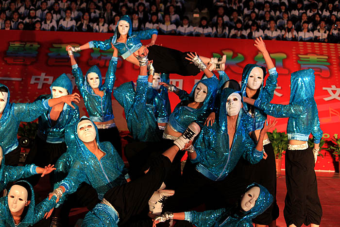 汇演首先由高一年段学生表演的鼓舞《腾飞中国》拉开序幕,紧接其后的歌伴舞,太极剑,配乐诗朗诵,教师红歌大联唱歌等节目一次次地把演出推向了高潮,演员们共同为全校师生奉献了一场视听盛宴。整个文艺演出历时二个多小时,最后演出在全校师生《歌唱祖国》大合唱声中圆满结束。