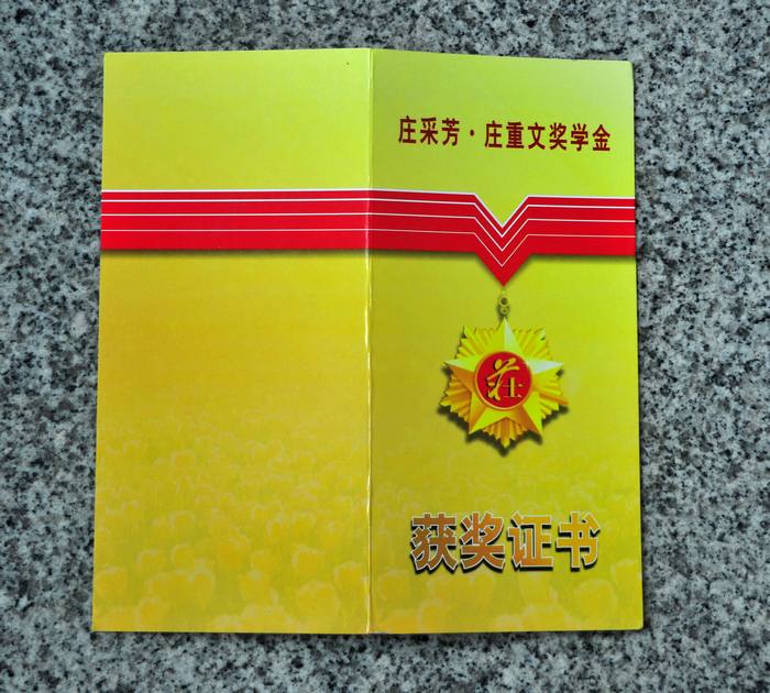 邵武一中2012届韦福超同学荣获2012年度庄采芳•庄重文奖学金