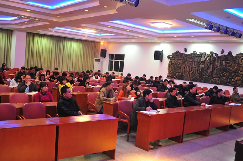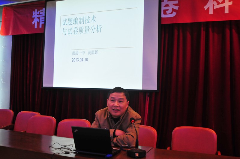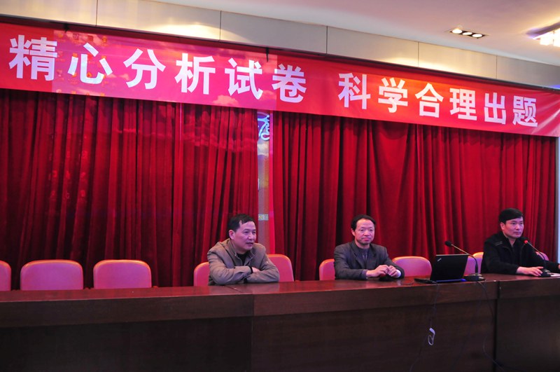 10日晚,一中全体教师齐聚教工会议室进行“精心分析试卷,科学规范出题” 理论学习。学习由校教研室主任吴玉平主持,化学高级教师张宝杰首先做了题为《如何科学规范地进行“发展性”学科考试命题》的讲座,他从学校考试的分类、着眼点,学校发展性考试的功能,试卷的双向细目表入手,分析考试的价值与属性等几方面指导教师科学规范进行命题。语文高级教师黄邵辉也做了题为《试题编制技术与试卷质量分析》的讲座,他从考试题型、具体案例入手,详细分析了试卷编制前的准备工作、试卷编制中的技术要点及试卷测试后的质量分析与评价。在最后的总结中,张光华书记向全校教师提出要求“年轻教师会选题,骨干教师会改题,名师会编题”。