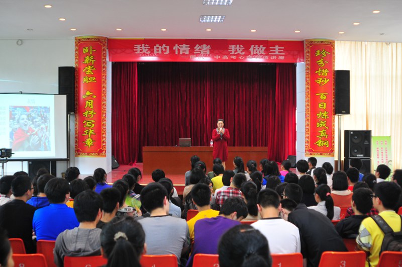 校园新闻 “我的情绪 我做主”——邵武一中高考心理调适讲座 作者:admin 来源:本站原创 日期:2013-05-10 人气:4162 2013届高考在即,为了缓解高三考生的紧张情绪,教会考生认识自己的情绪,学会运用积极的情绪迎接高考,5月10日,我校特地邀请教育心理学博士,高级讲师,福建心理危机救援中心特聘专家,福建青少年心理健康教育与咨询中心副主任——刘美玉博士前来我校给高三学生做现场讲座。刘老师的讲座轻松愉悦、幽默风趣、深入浅出,博得同学们一阵阵掌声。讲座上刘老师还教给同学们一些情绪调控方式方法,并现场引导大家体验与运用,要求同学们回去再加以练习和运用,希望能助力同学们打赢高考这场战役。 上一篇:一中文明引导学雷锋党员志愿者在行动 下一篇:邵武一中举办高三趣味体育活动缓解高考压力 通知公告 更多 【瑞榴 • 公告】2026年邵武一中第... 【瑞榴 • 公告】2026年邵武一中自... 【瑞榴 • 公告】2026年福建省邵武... 【瑞榴 • 公告】2026年福建省邵武... 【瑞榴 • 公告】2025年邵武一中第... 【瑞榴 • 公告】2025年福建省邵武... 最新动态 更多 【瑞榴 • 教研】深化课堂教学改革... 【瑞榴 • 安全】家校协同筑牢“舌... 【瑞榴 • 德育】春启新程育桃李 ... 【瑞榴 • 德育】百日淬烽尽,六月... 【瑞榴 • 校园开放日】百年传薪启... 【瑞榴 • 德育】凝心聚力启新程 ... 【瑞榴 • 家校活动】瑞榴沁家校 ... 【瑞榴 • 教研】喜报!邵武一中课... 【瑞榴 • 学生活动】薪火相传,筑... 【瑞榴 • 安全】严排查、除隐患、...