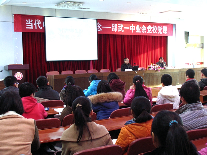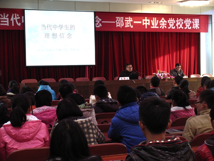 近日,邵武一中第八期业余党校在校教工会议室开班教授党课,200余名学员认真聆听了本次党课。主讲人校党委副书记,纪委书记周国华讲授了题为《当代中学生的理想信念》的党课。课上,他用一个个生动员的例子对中学生的理想信念作了深入浅出的阐述。生动的讲座让学员们都感到受益匪浅,他们纷纷表示要争做同学的楷模,争取早日入党。邵武一中“中学生业余党校”自2008年复办以来已成功举办了8期,已有2000多名学员顺利结业。