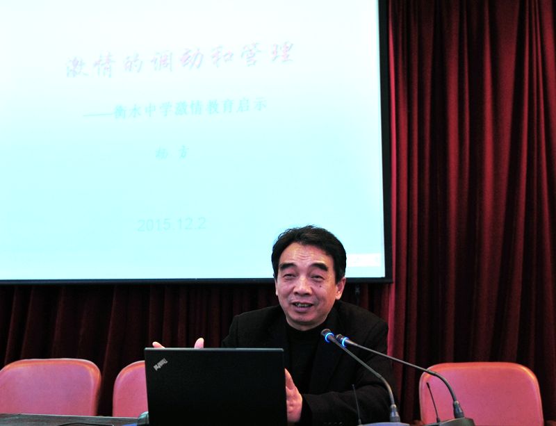 讲座上,饶干东副校长以“激情、高效、精细—衡水教育启示”为题,从高三复习策略、学校管理措施这两个方面详细介绍了三所学校抓高三三轮复习和教学常规管理的具体做法和经验。杨方副校长则结合本校实际以“激情的调动和管理——衡水中学激情教育启示”为题,从激情是活力之源、激情的调动、激情的过程管理这三个方面对衡水教育模式中如何激发师生的士气,较好发挥师生的潜能的一系列做法进行了深入的探讨。