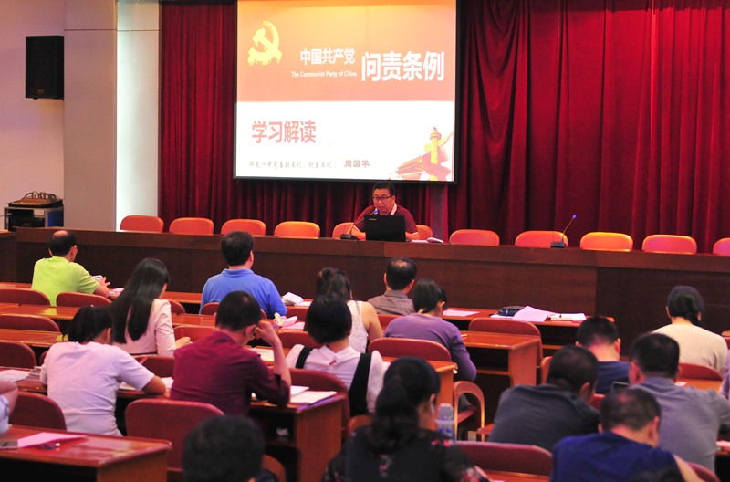 17日晚,邵武一中党委在校教工会议室举办党课,学习“习近平总书记系列重要讲话精神”及《中国共产党问责条例》,一中全体党员参加了党课学习。党课由邵武一中副校长杨方主持,市委党校高级讲师王仁锦为大家做了“习近平总书记系列重要讲话精神”的专题讲座,一中党委副书记、纪委书记周国华在会上做了“《中国共产党问责条例》学习解读”专题讲座,两个讲座通过详细的资料,丰富的事例让全体党员们更加明确了一名合格党员的标准,以更饱满的热情投身到教育教学的实践中去。