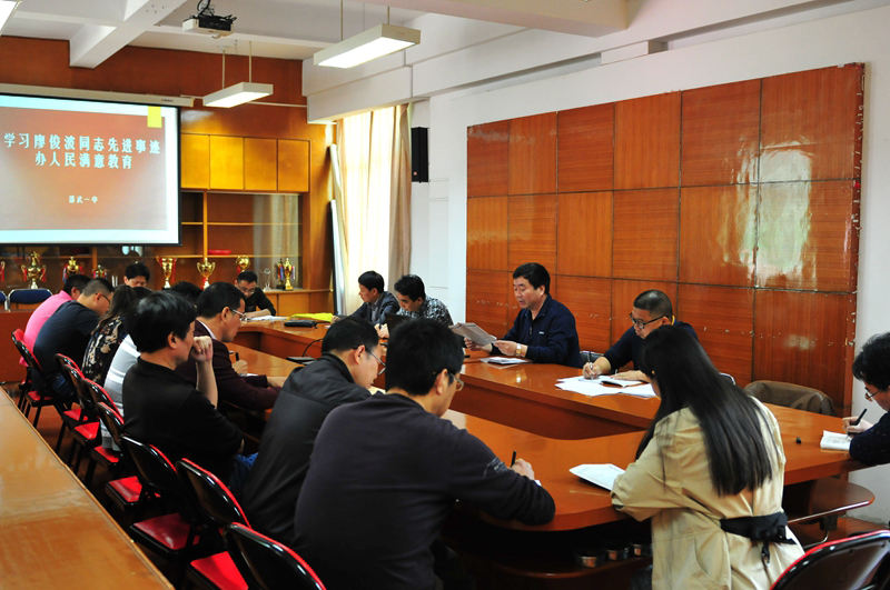 24日上午,邵武一中召开会议专题学习廖俊波同志先进事迹,一中郭胜光校长号召全校教职工学习廖俊波同志信念坚定、对党忠诚的政治品质;敢于担当、苦干实干的务实作风;心系群众、勤政为民的公仆情怀;无私奉献、忘我工作的敬业精神;廉洁奉公、干净做事的高尚情操。近期校党委还将把廖俊波同志先进事迹做为“两学一做”学习教育的专题,认真组织各支部贯彻到每一位党员,迅速掀起学习热潮。