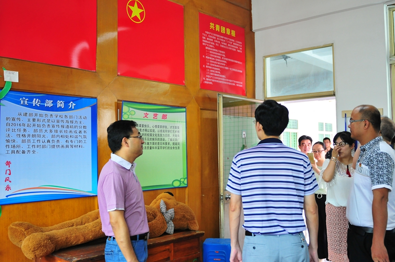 随后,校团委书记黄建国老师就学校的共青团工作做了介绍,主要有团组织机构、推优入团工作、团队活动、学生社团建设等方面的内容。通过宣传展板的展示,具体直观的呈现了学校共青团的全面工作。