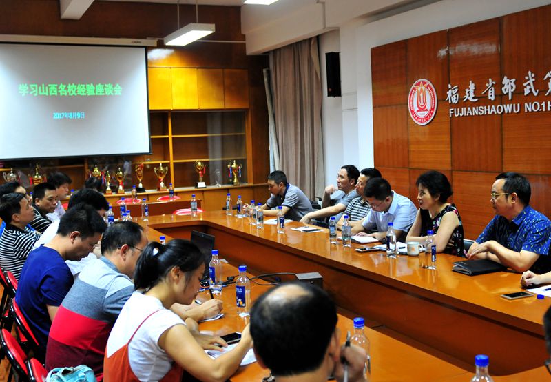 9日晚,邵武一中在校行政会议室召开学习山西名校经验座谈会。一中校行政班子全体成员,各年段长,支部书记,高三年段班主任以及市教育局组织局领导及机关股室负责人50多人参加了座谈会。副市长兰美香,吕立邦,教育局局长陈生良到会并讲话。