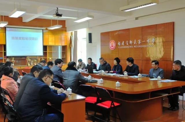 8日下午,邵武一中在校行政会议室召开“精英奖教金说明会”,市委常委统战部杨华部长、工商联许平平书记等一行7人及一中一层班子、高三年段长、教务主任及两名高三教师代表出席会议,会议由许平平书记主持。