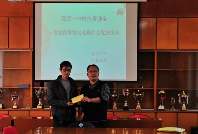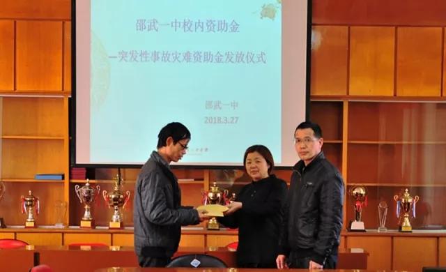 3月27日下午3时,邵武一中学生资助办举行校内资助金——突发性事故灾难资助金发放仪式。