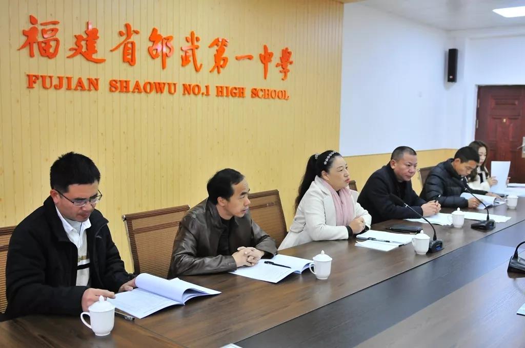 2019年12月18日上午,南平市学生资助管理中心标准化建设评估专家组梁海萍一行6人,在邵武市人民政府督导室副主任夏爱英和邵武市教育局资助中心主任黄流渊的陪同下到邵武一中评估验收学生资助管理中心标准化建设工作。