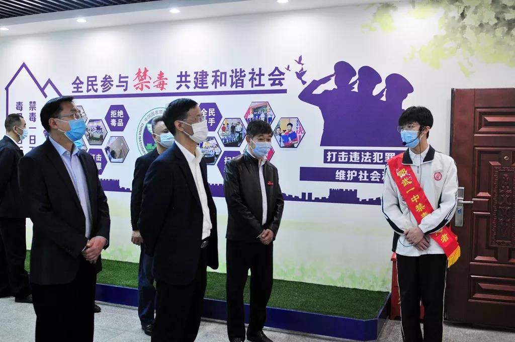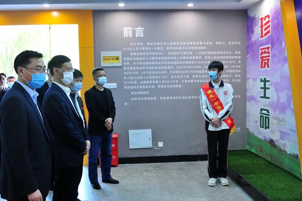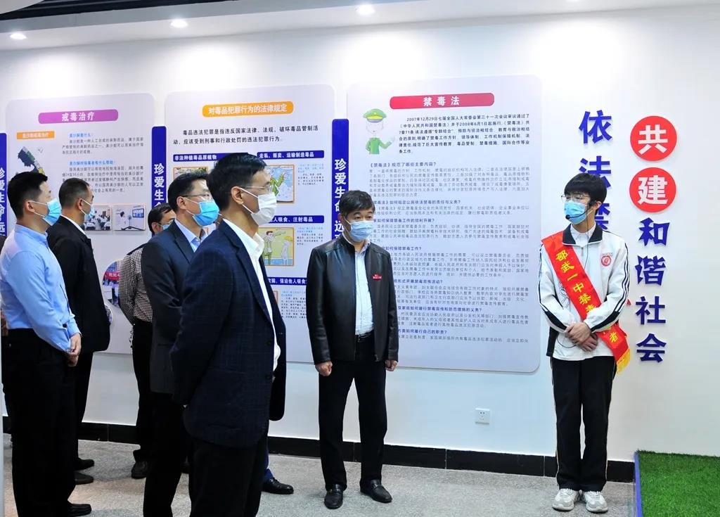 4月27日,福建省禁毒办专职副主任林群一行在邵武市政法委书记夏礼平,副市长、公安局局长郭群,教育局局长陈生良等陪同下视察了邵武第一中学林则徐禁毒宣教室,并了解学校毒品预防教育工作开展情况。