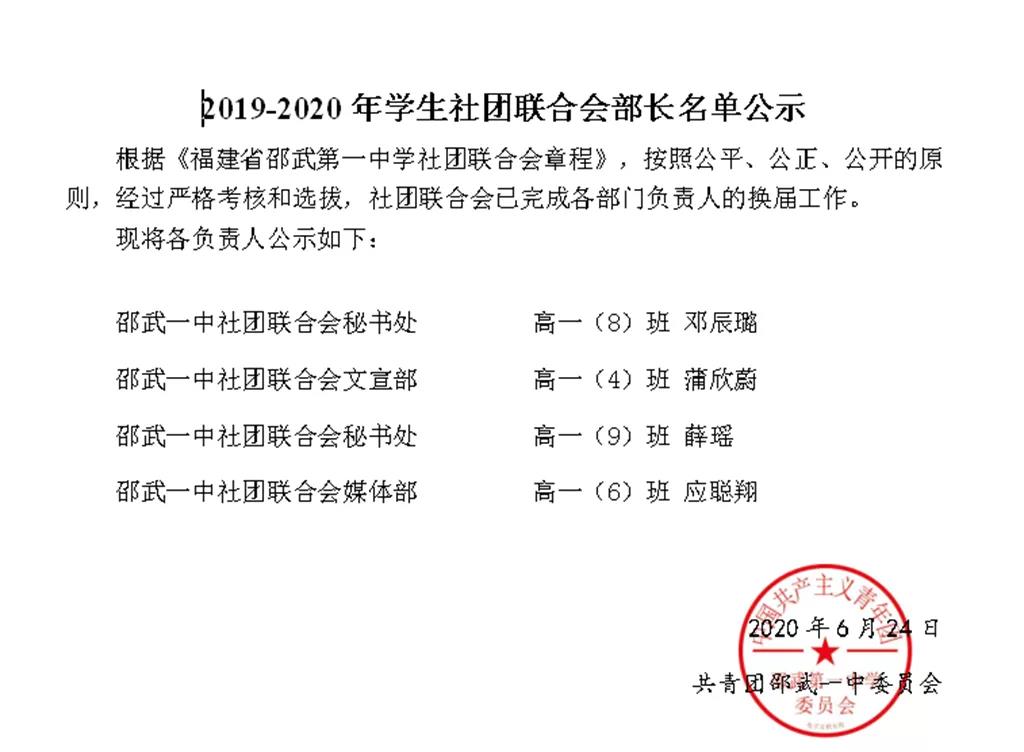 2019-2020学年邵武一中社团联合会换届竞选顺利完成