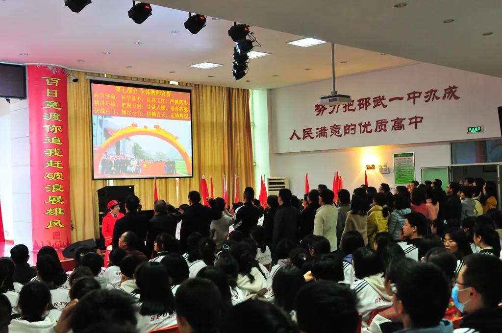 百日奋战,角逐群雄誓金榜题名,十年寒窗,拼搏前程报父母深恩。2021年2月26日,邵武一中领导和2021届全体师生聚集在学生报告厅,隆重召开百日誓师大会。出席本次大会的领导嘉宾有吴萌校长、许俊斌副校长及各科室主任。