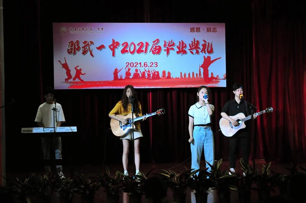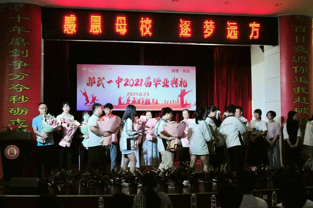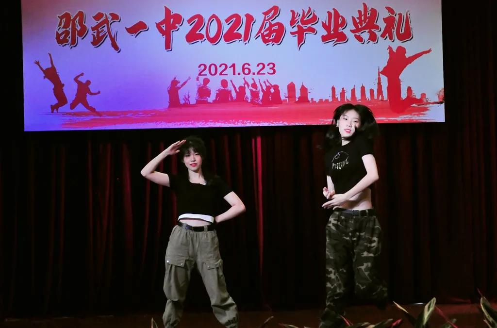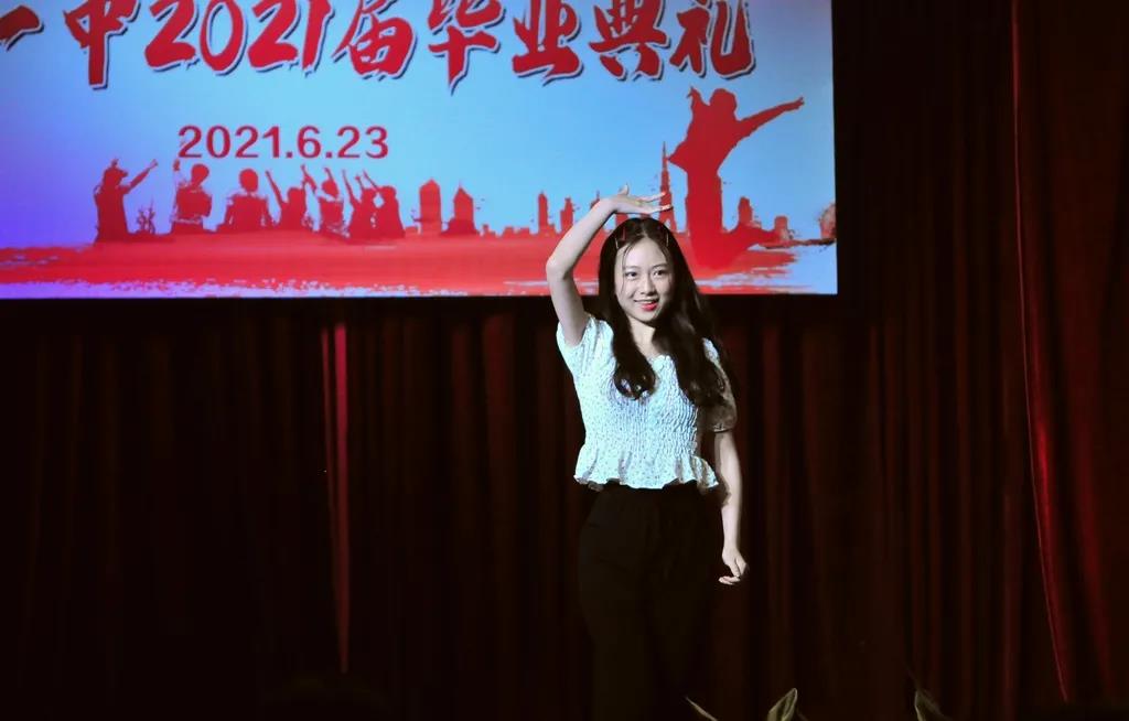 在各班学生代表给教师代表献花后,张欣阳、陈苏桐、刘林煜等同学通过唱歌和跳舞展示了2021届毕业班学子风采。