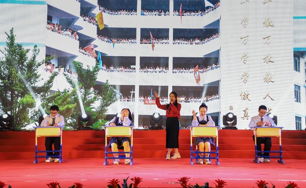 “唱支山歌给党听,我把党来比母亲……”,熟悉的旋律响起,高一年段学生们的歌声直抵人心;“让九千多万朵高洁的莲花,托举起民族复兴的中国梦!”,教师朗诵和高二年段学生伴舞,共同表达了让廉政成为一种信仰的心声;在铮铮的古筝声里,教师演唱,学生伴舞,用歌曲联唱表达对祖国的热爱和赞美。古典舞《盛唐》,着汉服依歌而起舞,再现繁荣昌盛的中国。现代舞《eight dancer》,爵士舞《骁》是青春的律动;情景剧《高考生》是追梦的旅途;三角戏《下南京》是文化的传承;校合唱团《飞来的花瓣》是赤诚的感恩。演出氛围在歌舞表演《把未来点亮》的旋律里达到最高潮。