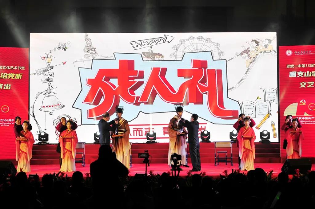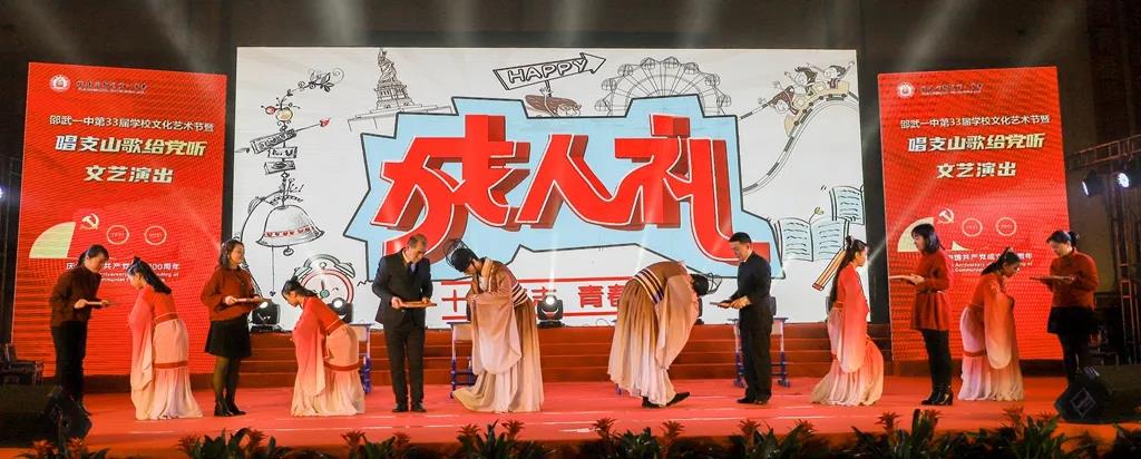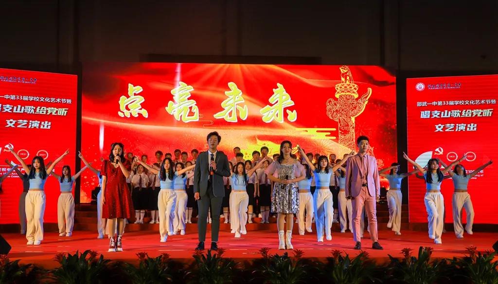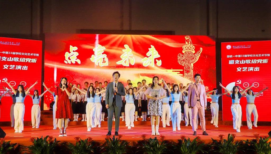 时代潮涌,征途辽阔,为庆祝中国共产党成立100周年,振奋精神,激发斗志,邵武一中于2021年12月31日,在邵武市体育馆隆重举行邵武一中第三十三届学校文化艺术节暨“唱支山歌给党听”文艺演出。市委宣传部、市教育局、文化体育和旅游、育才教育发展基金会等单位领导、挂校责任督学、综治副校长、驻邵部队共建单位首长、家委代表等嘉宾应邀出席本次艺术节文艺演出。