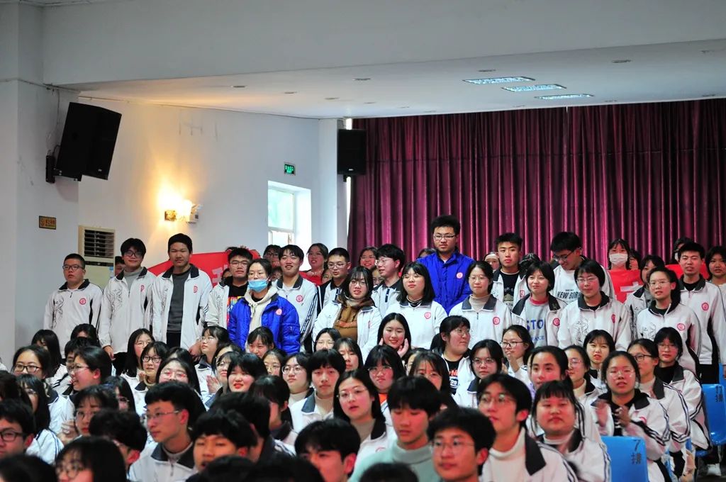 最后,各班学生宣誓把大会推向高潮,每班三名学生(领誓人、旗手、牌手)纷纷登台,带领自己班级同学宣誓。一时间,旌旗招展,虎啸龙吟。同学们用高亢的呐喊表达对高考的期许和决心:高考必胜!成功有我!