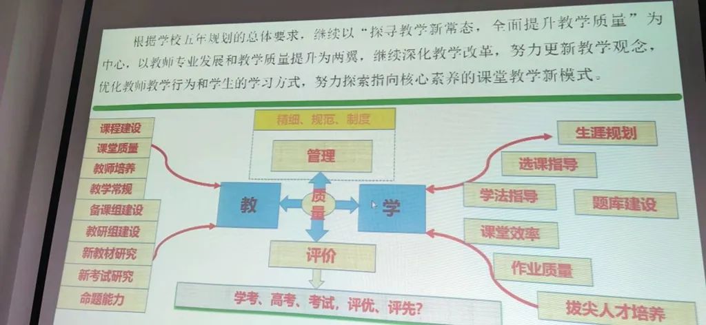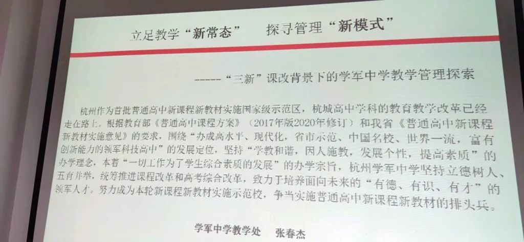 学校一行人接着聆听了学军中学《立足教学“新常态” 探寻管理“新模式”》教学管理经验介绍。并就“三新”背景下的课堂教学改革、学科教研活动、校本化作业设计、校园文化建设、学科竞赛、尖子生培养、高三复习备考等方面进行了深入的探讨和交流。并对今后通过在线开展学科教学研讨活动达成初步共识。
