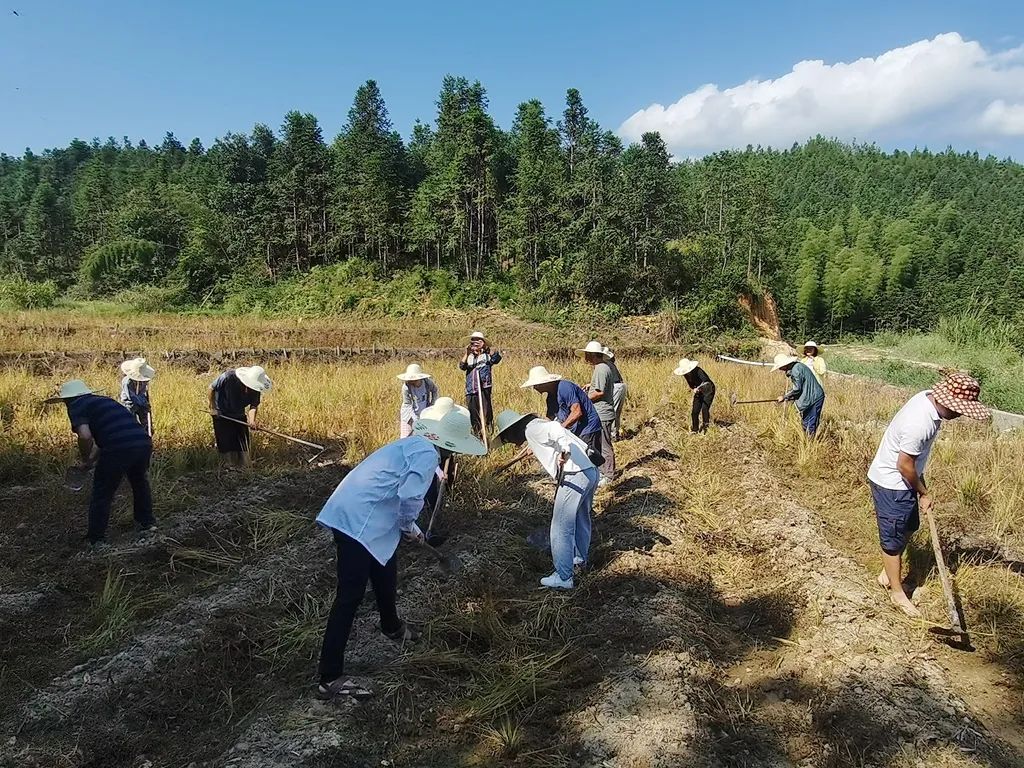 党员教师们顶着烈日,热情高涨,除草、翻地……大家团结协作,干劲十足,田中一片繁忙景象。大家用汗水和辛劳,默默为秋天的收成而努力。