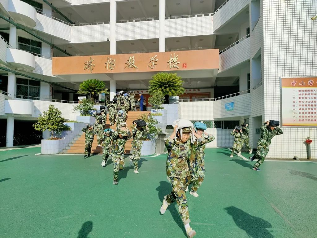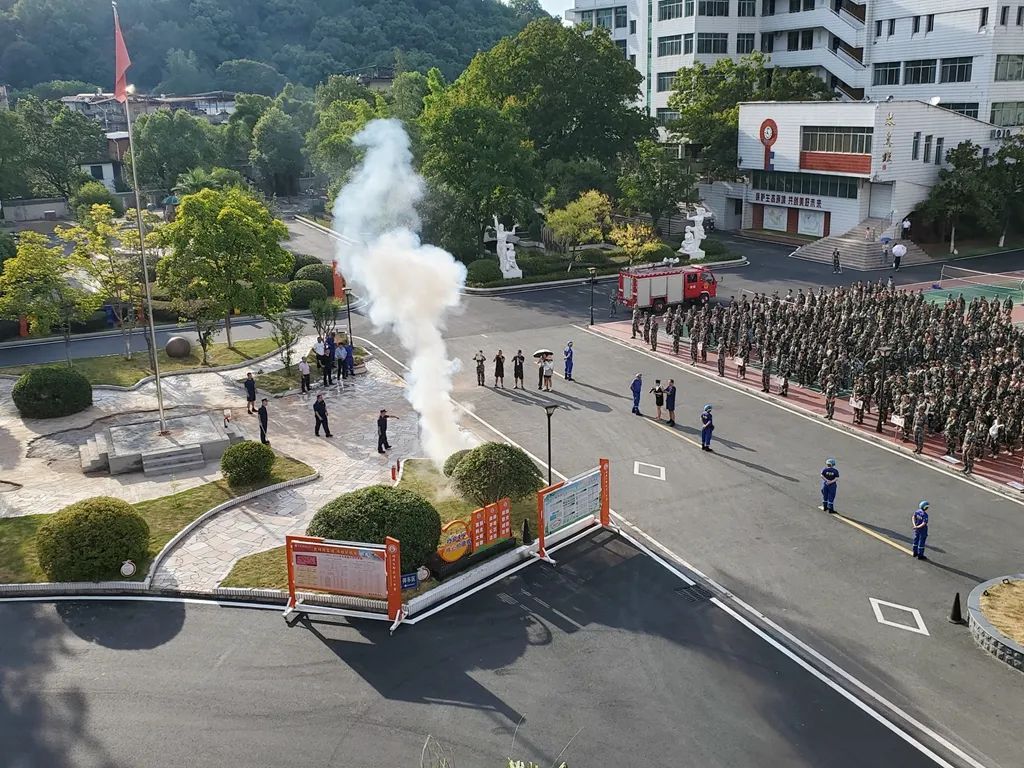 8月12日下午,我校还组织了灭火实战演练、防空疏散演练和地震避险紧急逃生演练。紧急短促的警报声响起,同学们在救援队队员的组织下,有序快速从教学楼疏散到应急疏散场地。演练结束后,蓝天救援队和消防救援队代表就此次演练给予了充分肯定。最后,许俊斌校长作总结发言,他强调各班要尽快总结此次演练经验,将演练成果运用于实际,进一步提升学生应对突发紧急事件的能力。