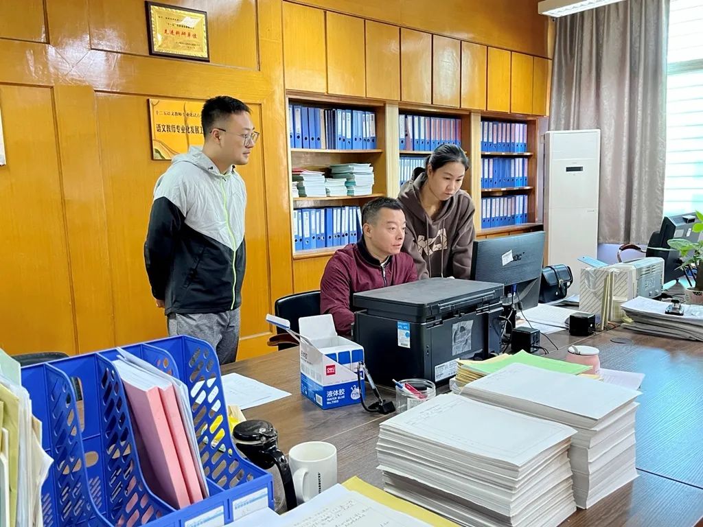 然后是材料查阅环节。专家们就“规划准备”、“组织实施”、“应用成效”三块内容对照指标,详细查阅材料,发现问题及时指出并要求改正。