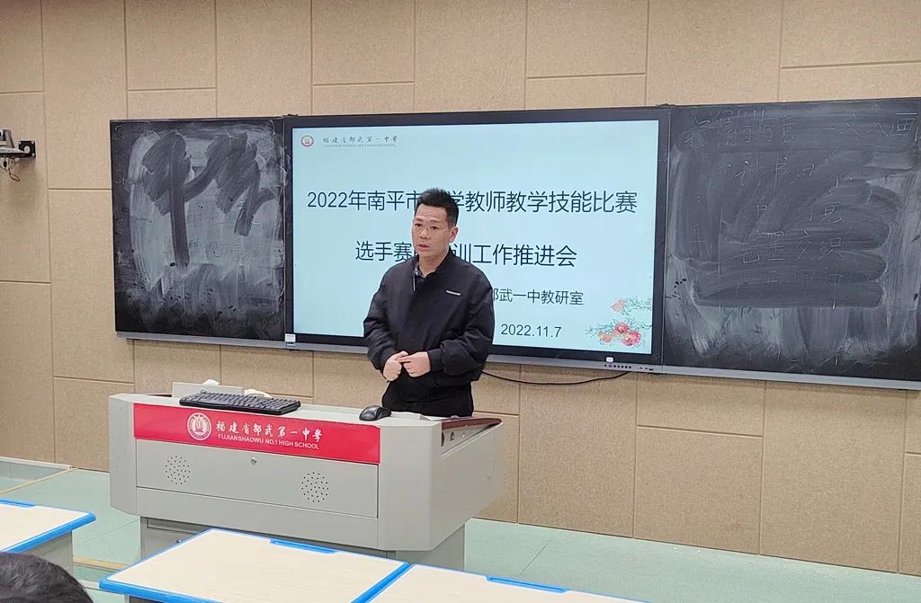 为积极备战“2022年南平市中学教师教学技能比赛”,提升教师比赛能力,11月7日晚上,教研室在求知楼四楼录播室组织开展教学技能大赛赛前培训。许俊斌校长、余国辉副校长、邵武七中代表和邵武一中全体参赛选手、指导老师参加了此次培训,本次活动由教研室全帆主任主持。