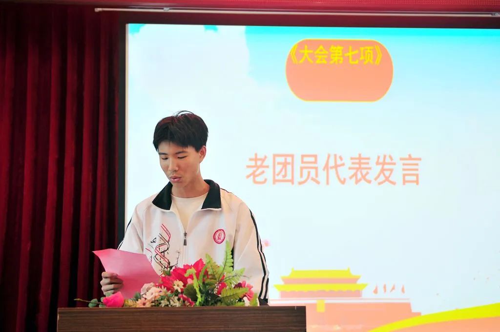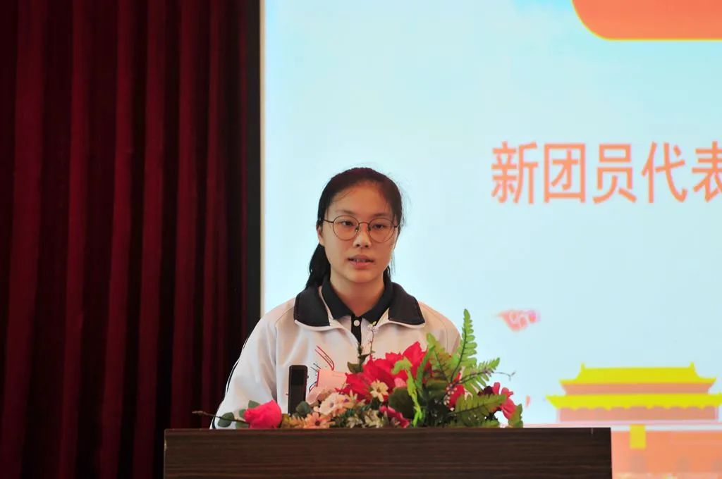 高二(2)班洪予祺与高二(1)班危馨瑶分别代表老团员和新团员发言,新老团员相互勉励,牢记时代重任,坚定青春理想,努力学习,不断进取,勇于担当,用实际行动践行习近平总书记对青年的期望与寄托。