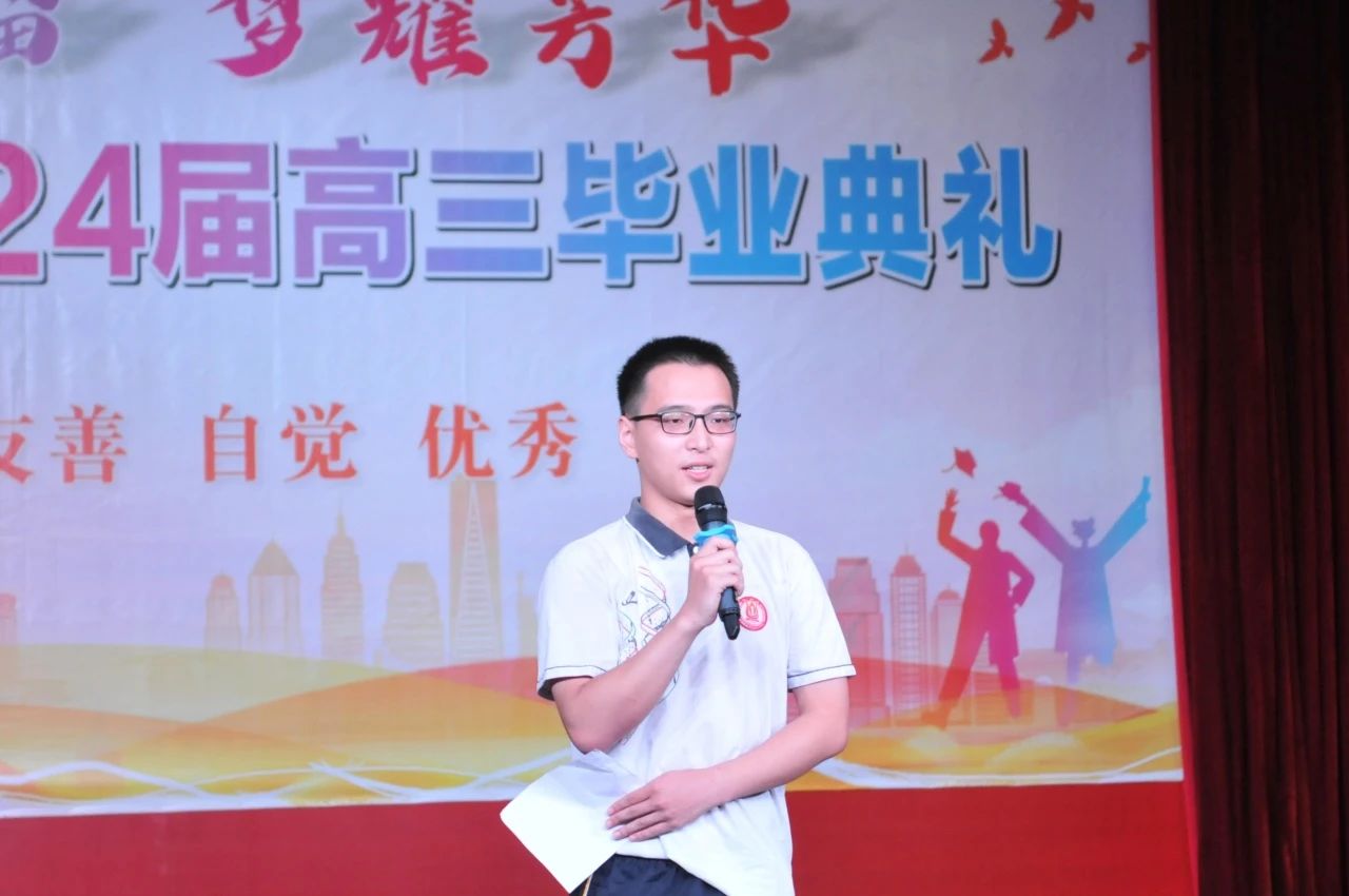毕业生代表李永翔同学上台发言,他的话语中充满了对同窗情谊的珍惜和对未来的憧憬。舞蹈《sweet juice》和歌曲《有没有那么一首歌让你想起我》表达了对青春的热爱和不舍。