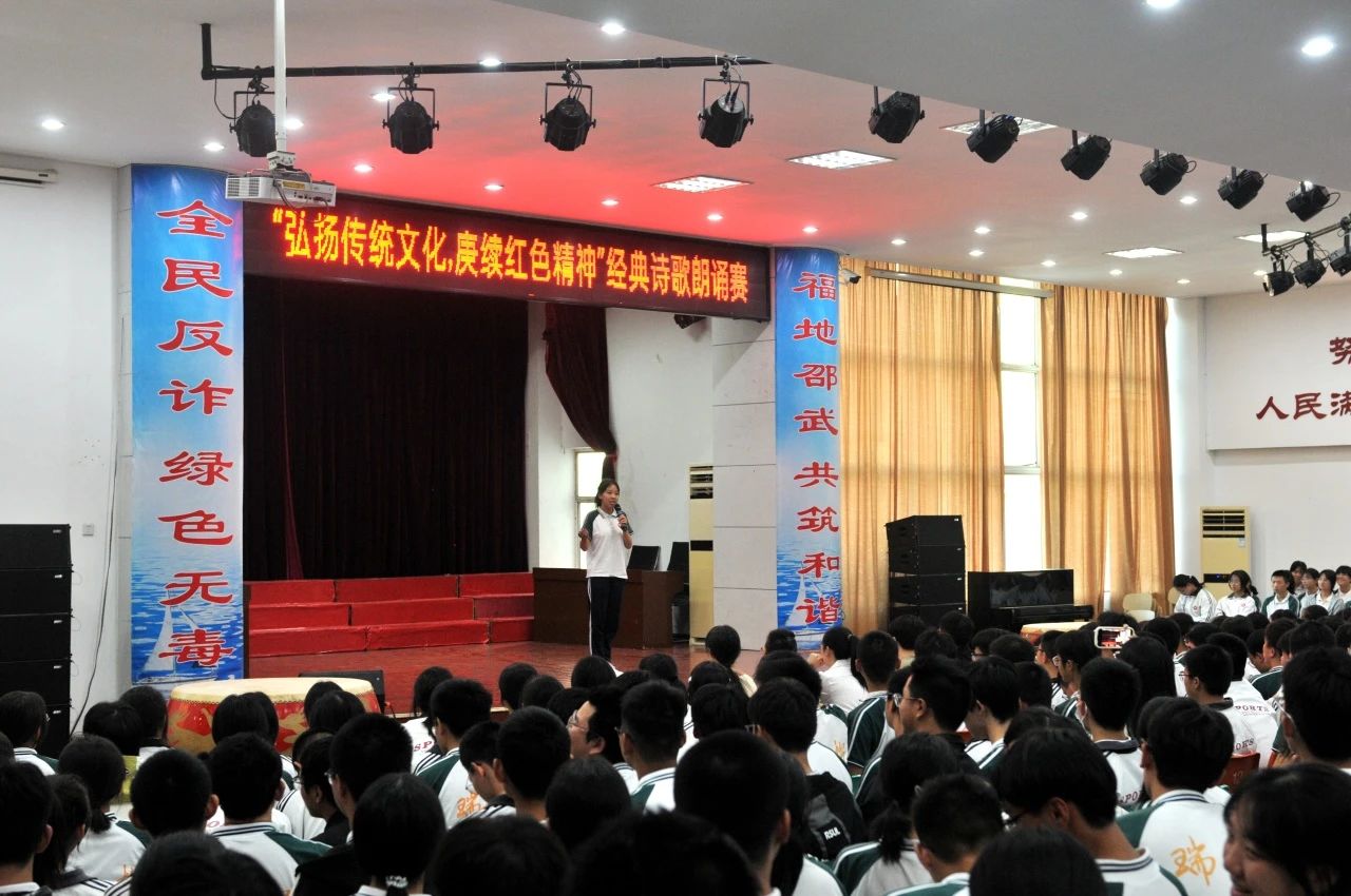 2024年10月14日下午,高一年段全体学生齐聚于学生报告厅,共同参与了一场主题为“弘扬传统文化,赓续红色精神”的经典诗歌朗诵赛。