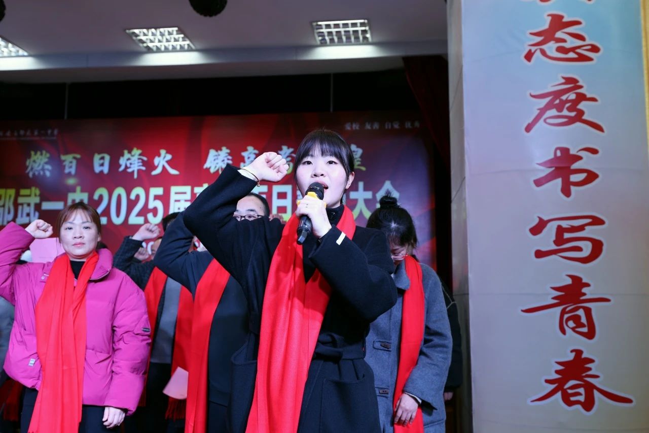 赖舒曼同学铿锵有力的发言鼓励高三学子:所有在题海中挣扎的夜晚,都在为最后的爆发蓄能;所有被红笔刺穿的试卷,终将拼成胜利的版图!当百日后的朝阳升起,让成绩单成为最耀眼的捷报!