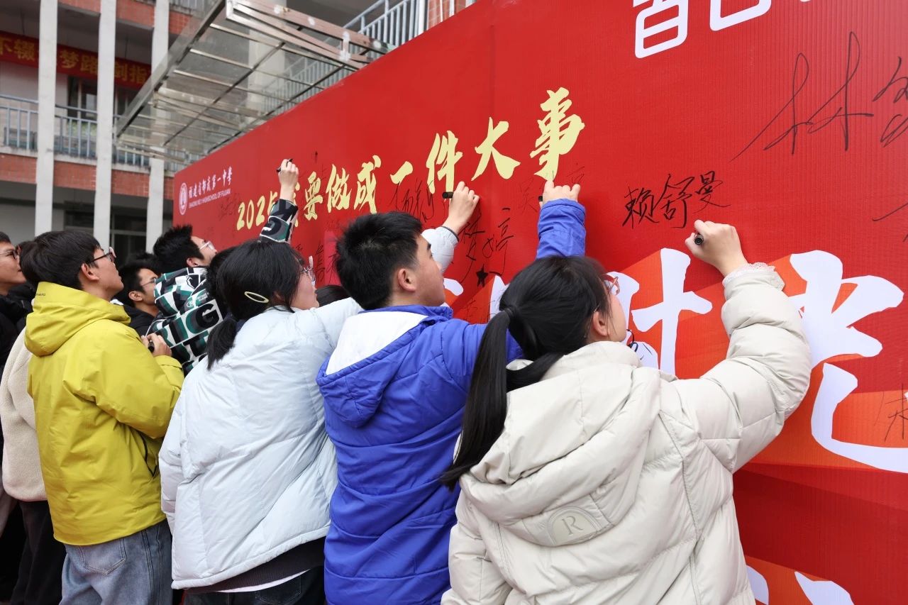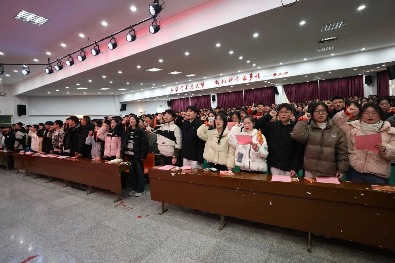 各班学生代表带领全班同学激情宣誓,承诺将全力以赴,迎接高考的挑战。每一句誓言都充满了力量与决心,展现了不畏艰难、勇往直前的精神。那一声声青春的呐喊,是他们奋战高考的决心,也是他们对未来的憧憬。